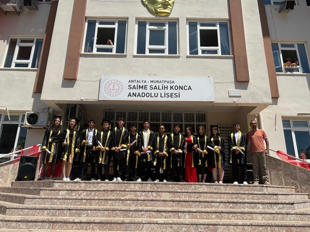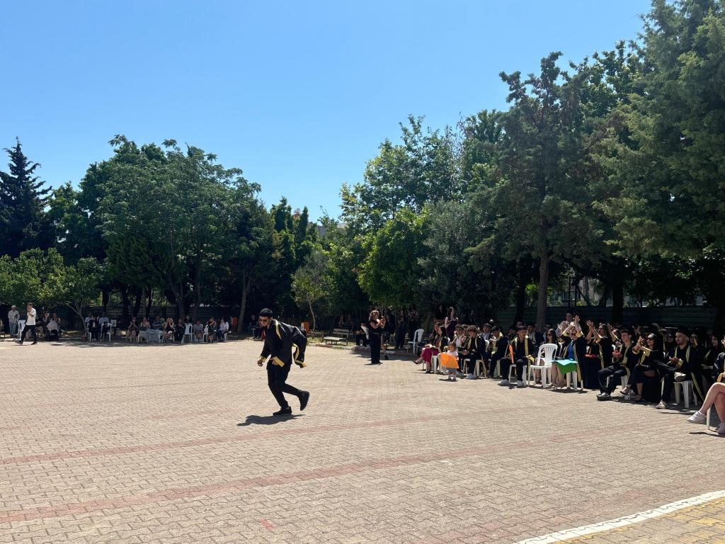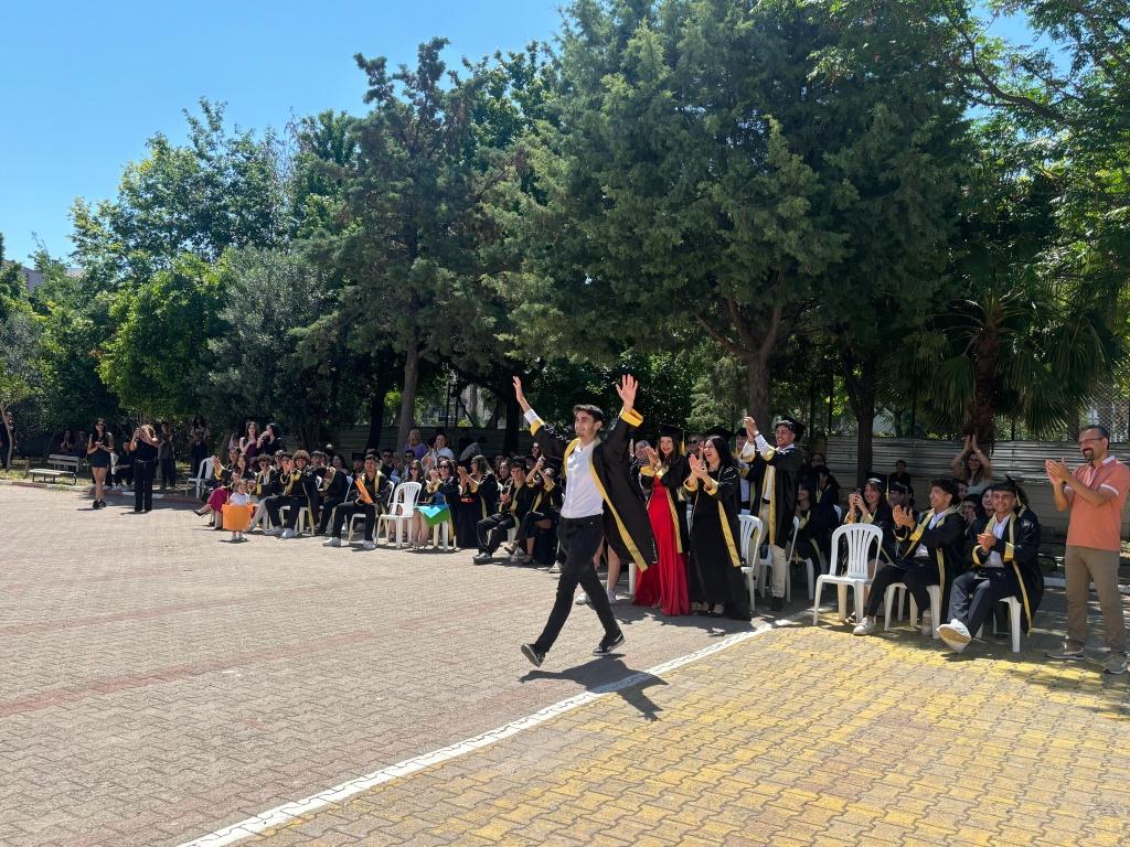 Okulumuzda bir geleneği daha sürdürmenin mutluluğunu yaşadık. 12-ABCDE sınıflarımız için düzenlenen mezuniyet töreni, okul bahçemizde velilerimizin ve öğretmenlerimizin yoğun katılımıyla gerçekleştirildi. Öğrencilerimiz, yıllar süren emeklerinin ve gayretlerinin karşılığını alarak lise öğrenimlerini tamamlamanın gururunu yaşadılar.